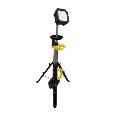 Shop Pro cordless tripod light allows you to bring it to any job site and light up the work area with 10,000 lumens. Comes with a battery adapter for Milwaukee, Makita, Dewalt batteries. Can also easily be stored away with a press of a button!